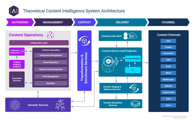 Content intelligence requires a more sophisticated content system architecture than traditional publishing processes provide. The more we cling to old methods and approaches for content delivery, the less agile our content will be, and the less scalable the customer experience. What’s more, we lose the opportunity to automate time-wasting manual processes that bog down content delivery.