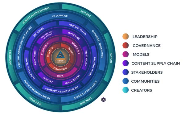 - Governance framework: Lifecycle governance, a reuse strategy, semantics governance model, style guides, and an interoperability plan significantly reduce the issue of content incompatibility across the organization, while strengthening the brand, as well as improving quality and consistency of the customer experience.