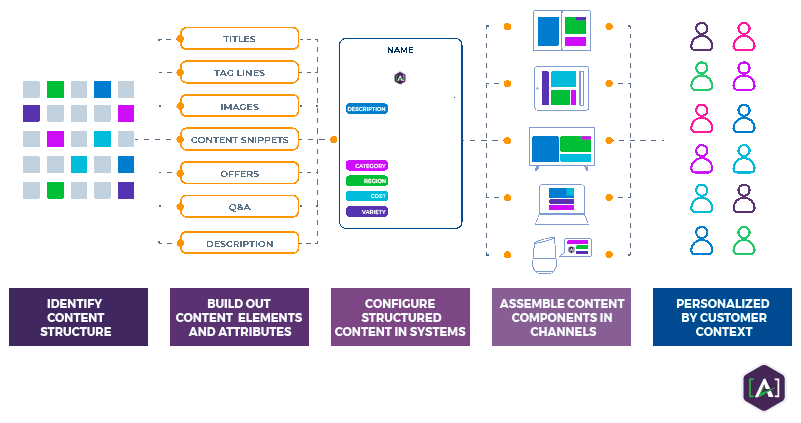 In all of these cases, the assembly of structured content components for the right person, at the right place, on a timeline, is the hallmark of a personalized, relevant, positive customer experience. Getting some unit of content in front of someone based on intent, timeline, or cohort is the goal and the primary challenge for teams attempting to achieve relevance.
