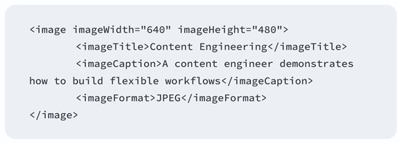 Imagine you’re tasked with developing an XML schema that includes support for providing image metadata (title, image size, image format, etc.), and you create the following XML structure: